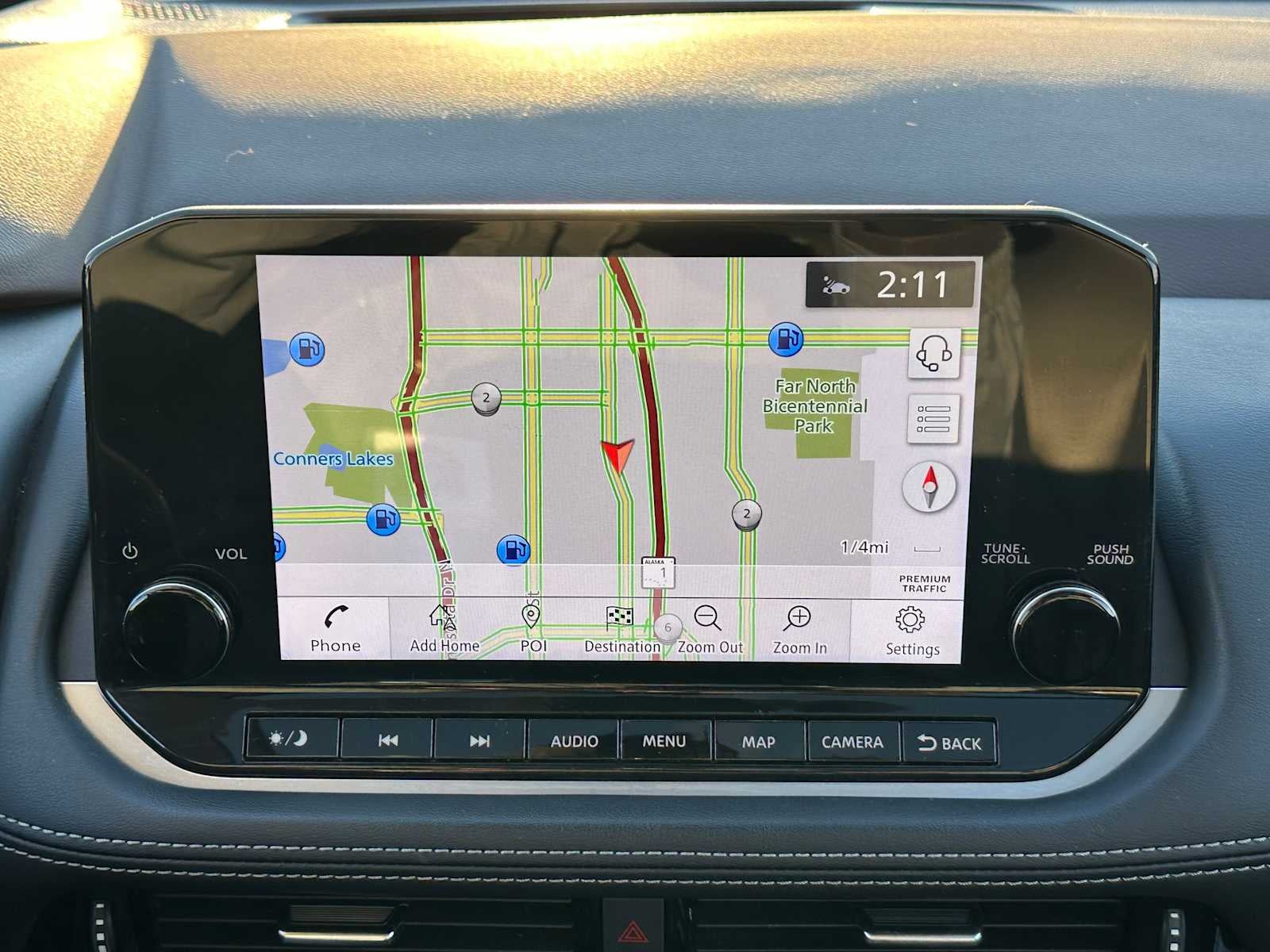 - Radio: AM/FM NissanConnect w/Navigation -inc: Nissan door to door navigation w/3D building graphics and satellite imagery featuring online POI search and online premium traffic information, SiriusXM Traffic, SiriusXM Travel Link, 9" color display w/multi-touch control, NissanConnect featuring Apple CarPlay and Android Auto, SiriusXM Satellite Radio, 2 illuminated USB connection ports (1 type-A, 1 type-C), Bluetooth® hands-free phone system, streaming audio via Bluetooth®, hands-free text messaging assistant